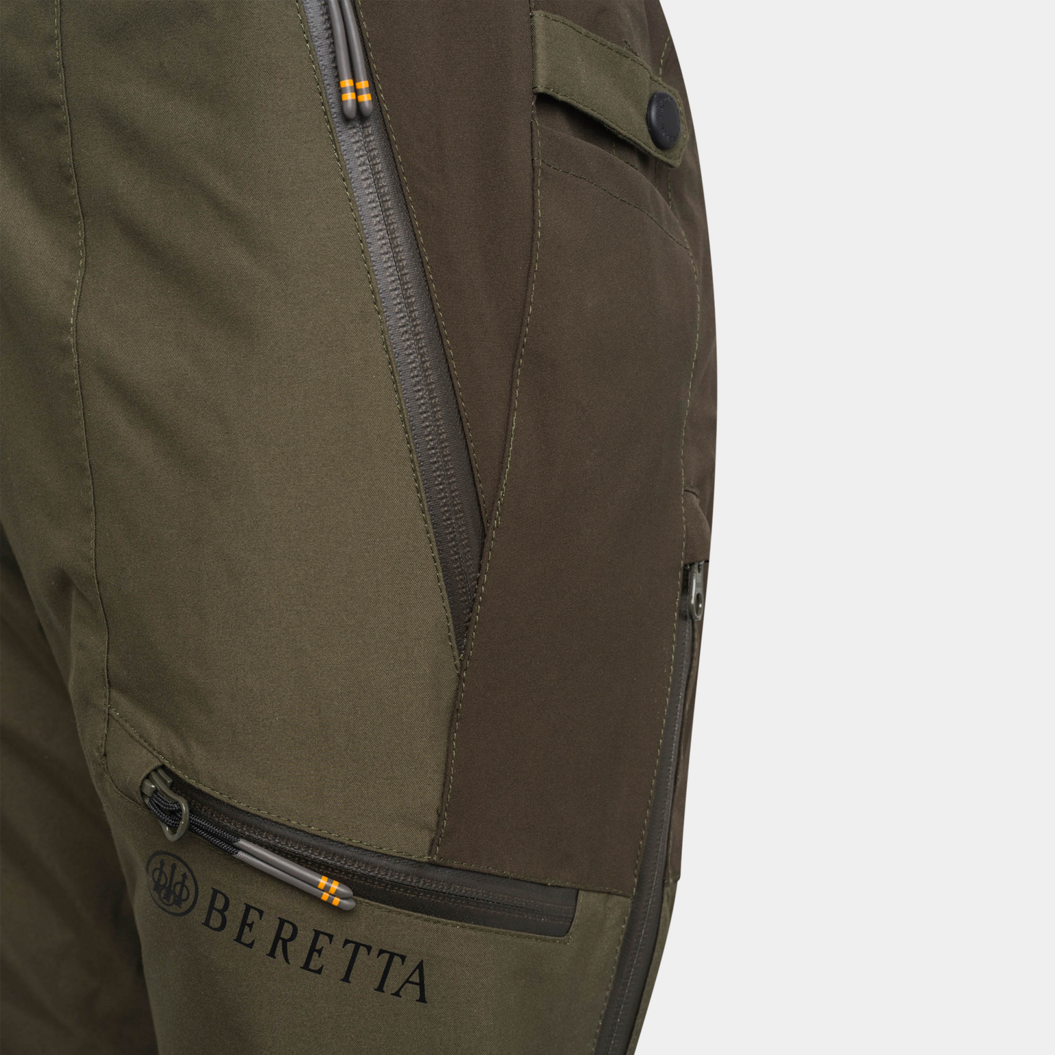 Tack vare BWB EVO - Beretta Waterproof Breathable EVO, ett membran med elastisk söm, är byxorna både vattentäta och ventilerande. Huvudmaterialet är utformat i mjuk, ljudlös mikrofiber. Stretchpaneler säkerställer god rörelsefrihet. Byxorna har också ventilationsdragkedjor som ökar andningsförmågan.