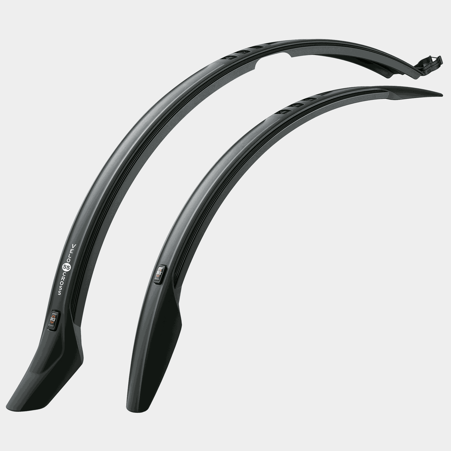 Velo 55 Cross skärmsats ser sportigt ut och är mycket enkelt att ta av och på snabbt. För bättre styvhet i skärmarna kan stagsatsen Velo 55 U-stay Kit köpas som tillbehör.