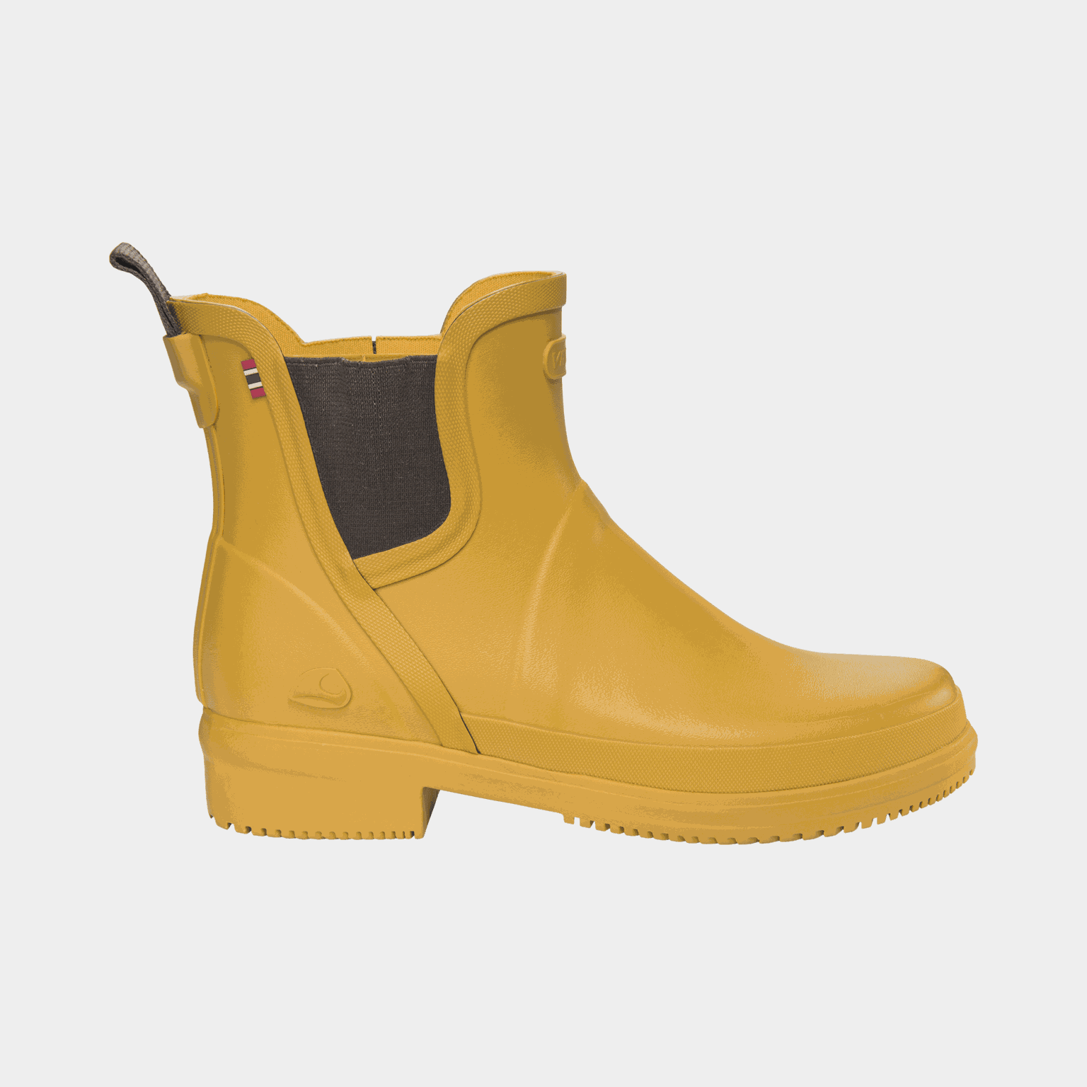 Låg, urban gummistövel med naturgummi och snabbtorkande foder. Uppbyggd häl skapar en feminin design.